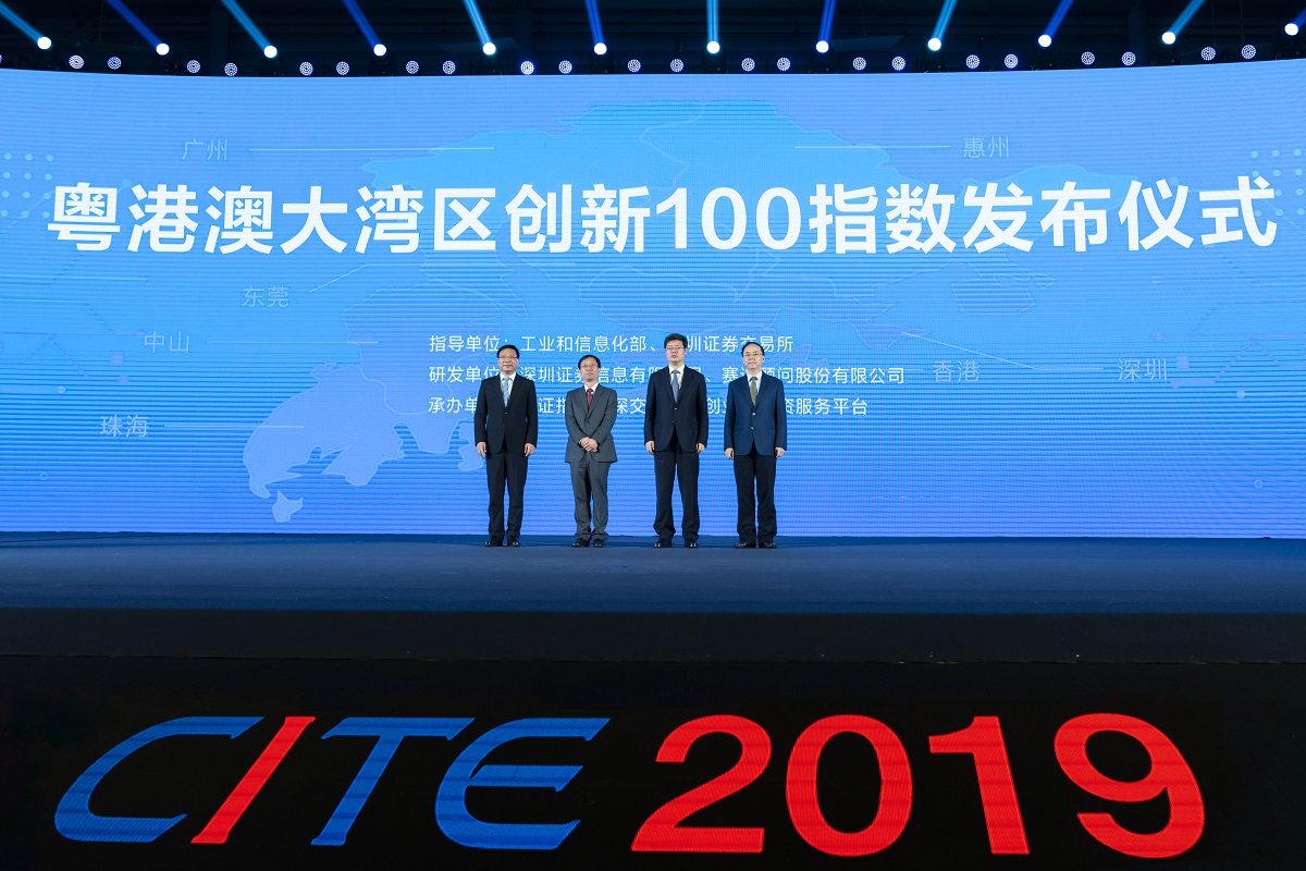 為落實(shí)《粵港澳大灣區發(fā)展規劃綱要》要求,發(fā)揮資本市場(chǎng)服務(wù)實(shí)體經(jīng)濟作用,助力大灣區高質(zhì)量發(fā)展,2019年4月9日,深圳證券信息有限公司聯(lián)合工信部下屬單位賽迪研究院在第七屆中國電子信息博覽會(huì )開(kāi)幕式上,發(fā)布粵港澳大灣區創(chuàng )新100指數(簡(jiǎn)稱(chēng):灣創(chuàng )100,代碼:980001),標志著(zhù)粵港澳大灣區系列指數正式發(fā)布。工信部副部長(cháng)王志軍、廣東省副省長(cháng)覃偉中、深圳市市長(cháng)陳如桂、深交所理事長(cháng)吳利軍共同見(jiàn)證灣創(chuàng )100發(fā)布。